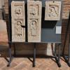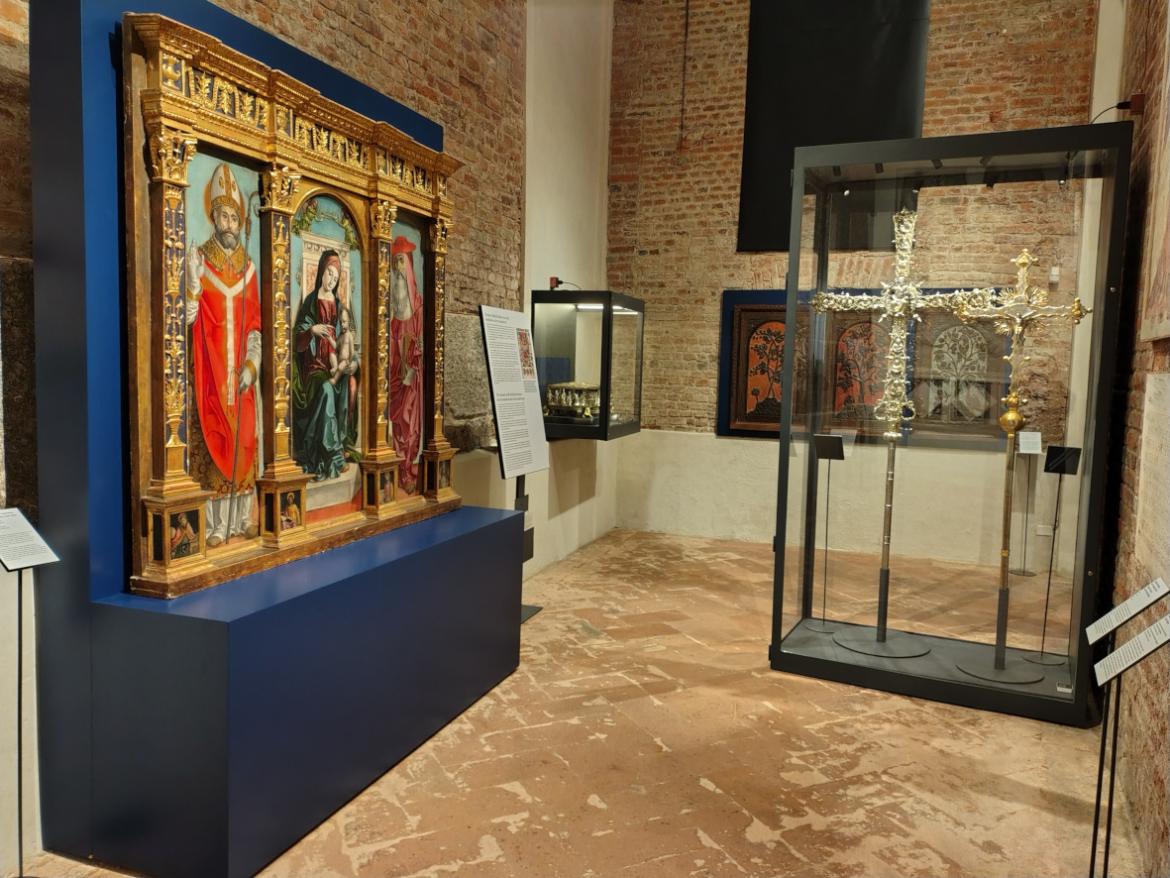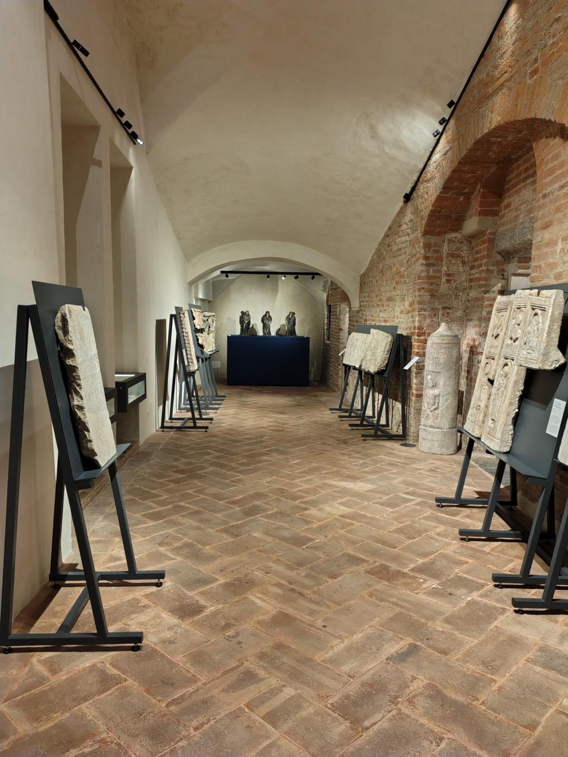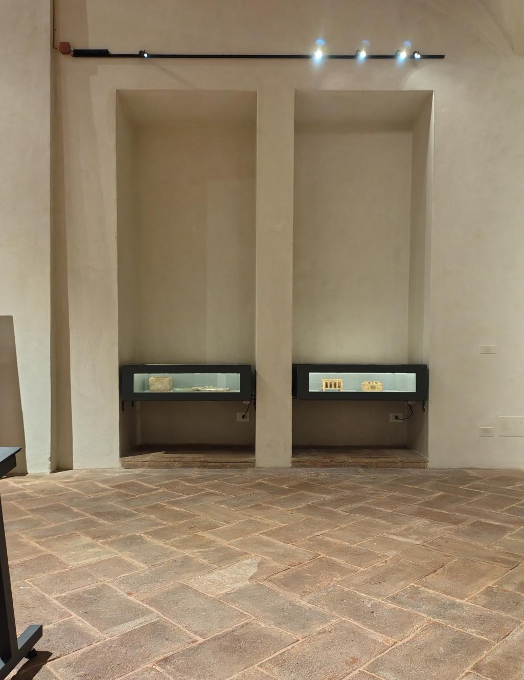 Per ogni opera è stata individuata una collocazione specifica e realizzato un arredo progettato su misura, dalle vetrine ai “cavalletti” per gli oggetti in pietra, ai supporti specifici come quello per i pleurants.