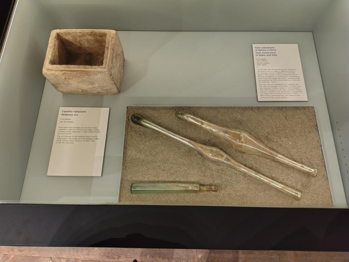 Situato all'interno della Basilica, il museo occupa una sala nuova (ex-Sagrestia dei Frati ristrutturata), che ospita le opere legate alla vita di S.Ambrogio (tra cui il suo letto funebre) e alle fasi antiche dell'edificio, e una vecchia (Capitolino, sede museale dal 1999), in cui sono esposti manufatti in pietra e stucco e opere che fanno parte del patrimonio che si è stratificato nei secoli. Oggetti disomogenei per dimensioni e per tipologia.