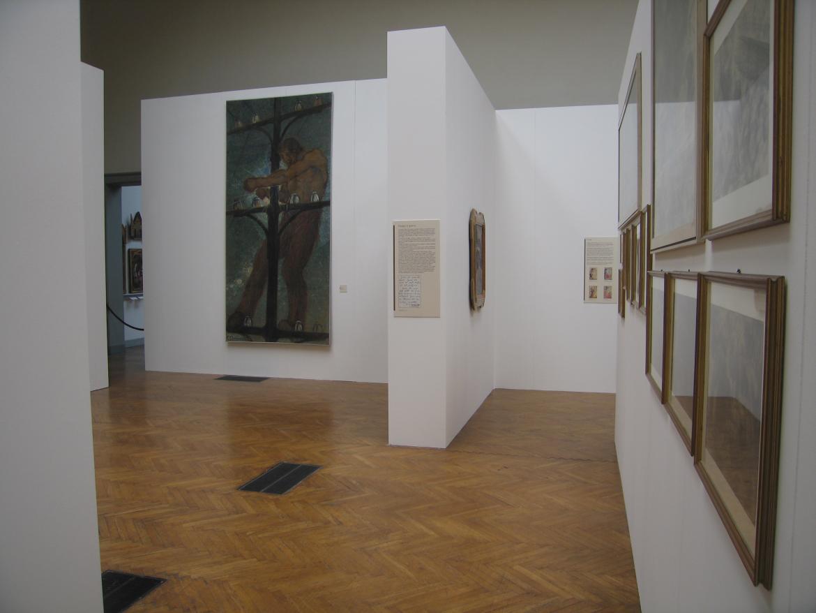 L'allestimento è concepito come una grande “scatola” realizzata all'interno del grande salone al piano terra, con lo scopo di creare uno spazio dedicato ai dipinti senza dover smontare dalle pareti perimetrali i grandi dipinti e le pale appese.