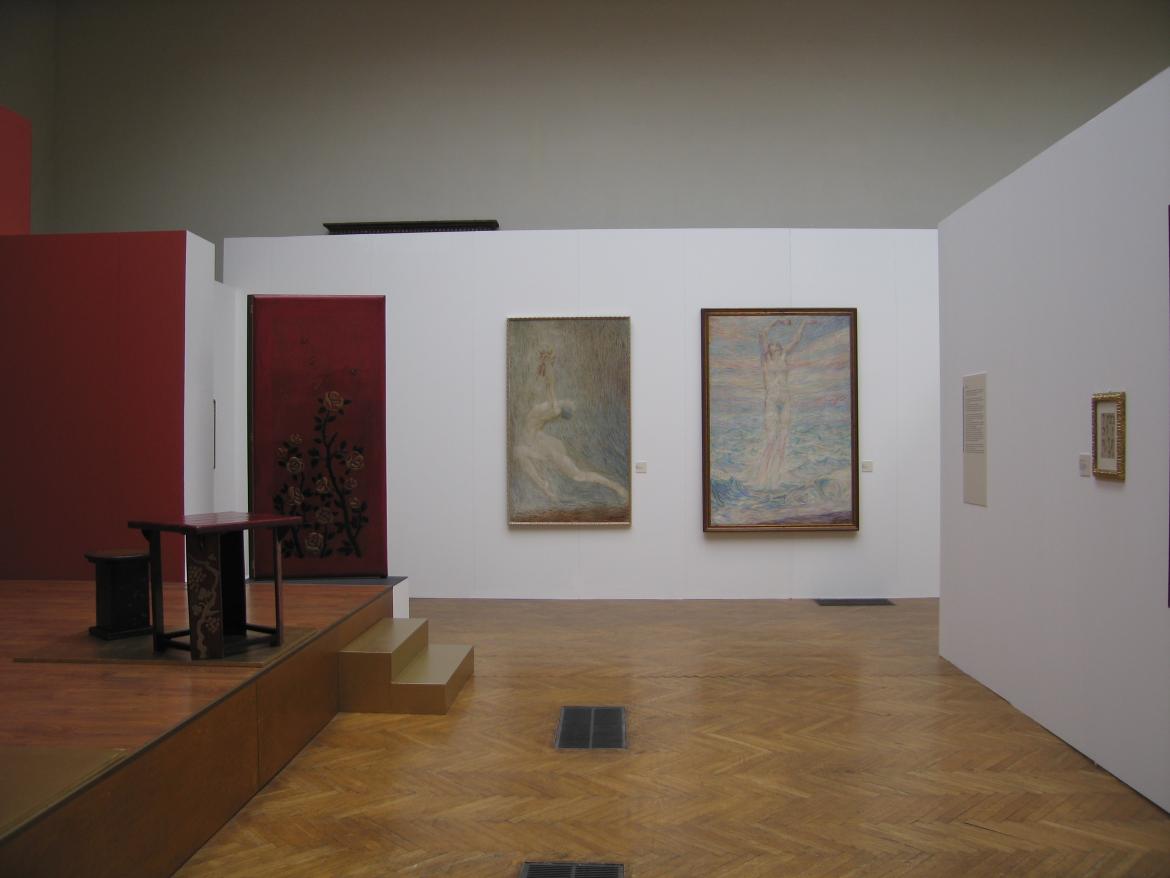 Il colore bianco intende riprendere quelle pareti del salone, mentre la suddivisione interna della mostra è strutturata per offrire ai visitatori un percorso a sorpresa, che porti all'emozione finale della vista dei tre grandi dipinti.
