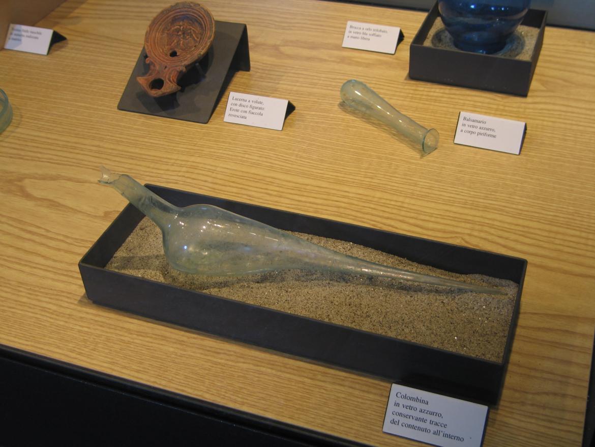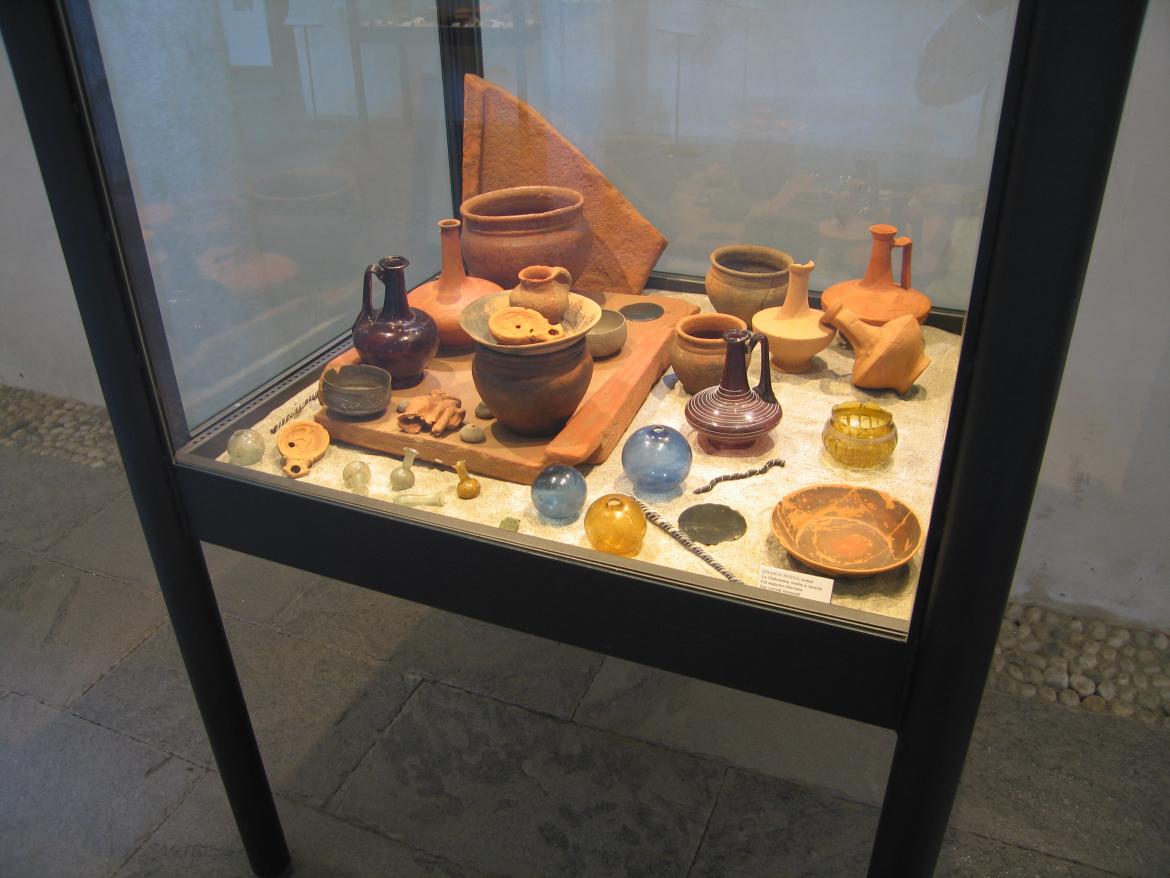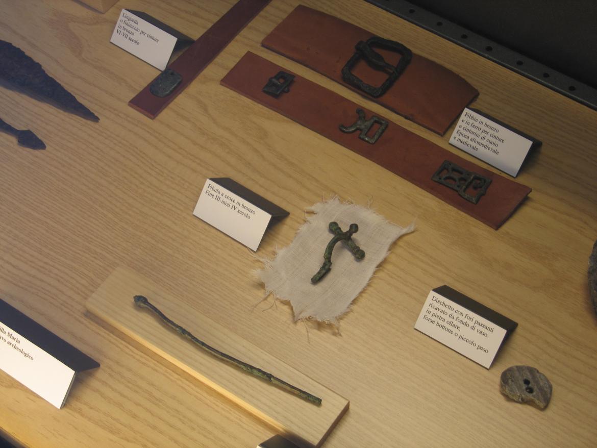L’accento è posto sulla presentazione dei reperti archeologici, grazie anche all’uso evocativo dei materiali: legno, sabbia, tessuto, cuoio, ferro nero.