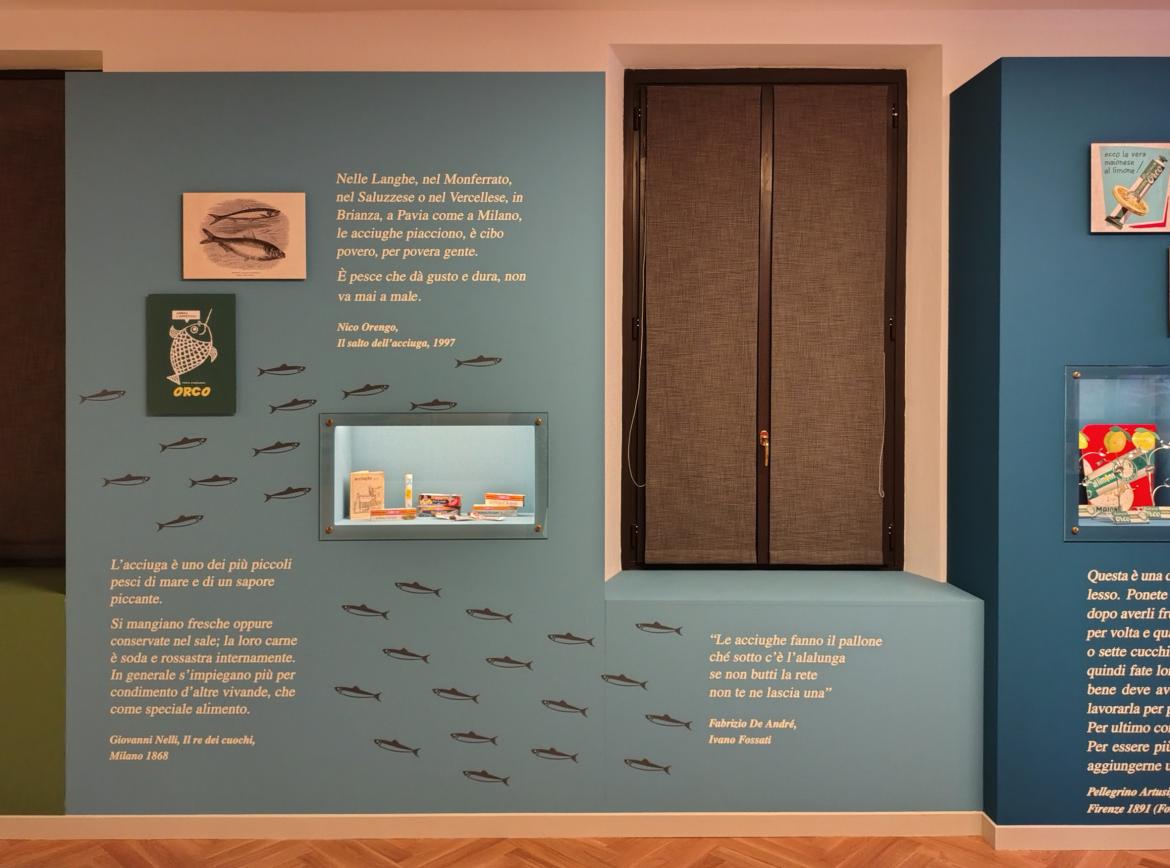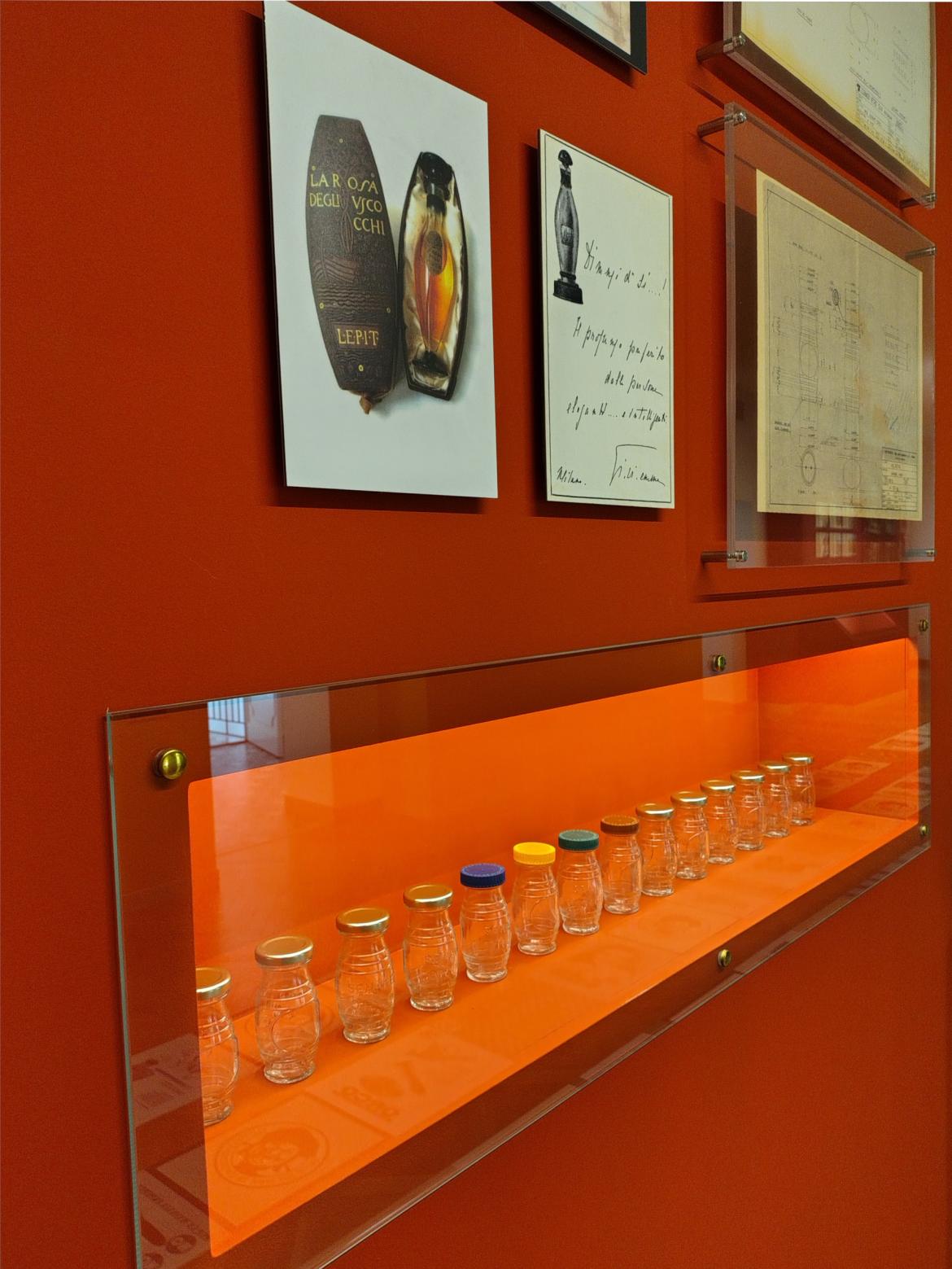 L'allestimento è volutamente allegro, colorato (le tinte del packaging), movimentato. Gli oggetti non sono molti, perché raramente le aziende conservavano testimonianze della propria produzione, mentre vi sono ampie memorie di una vivace produzione di immagini pubblicitarie: a partire dall'immagine dell'Orco Mangiabene ideato dall'illustratore francese Achille Lucien Mauzan nel 1923, a cui si ispira il logo attuale. Ci sono anche un grande gioco dell'oca a pavimento, una postazione olfattiva, un angolo con la proiezione di spot pubbicitari che coprono molti decenni di storia.