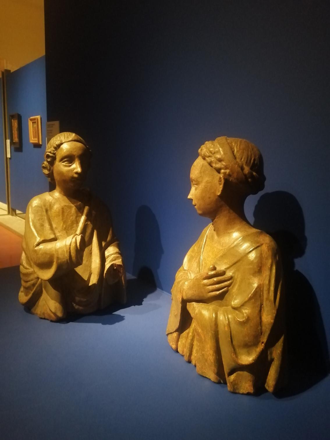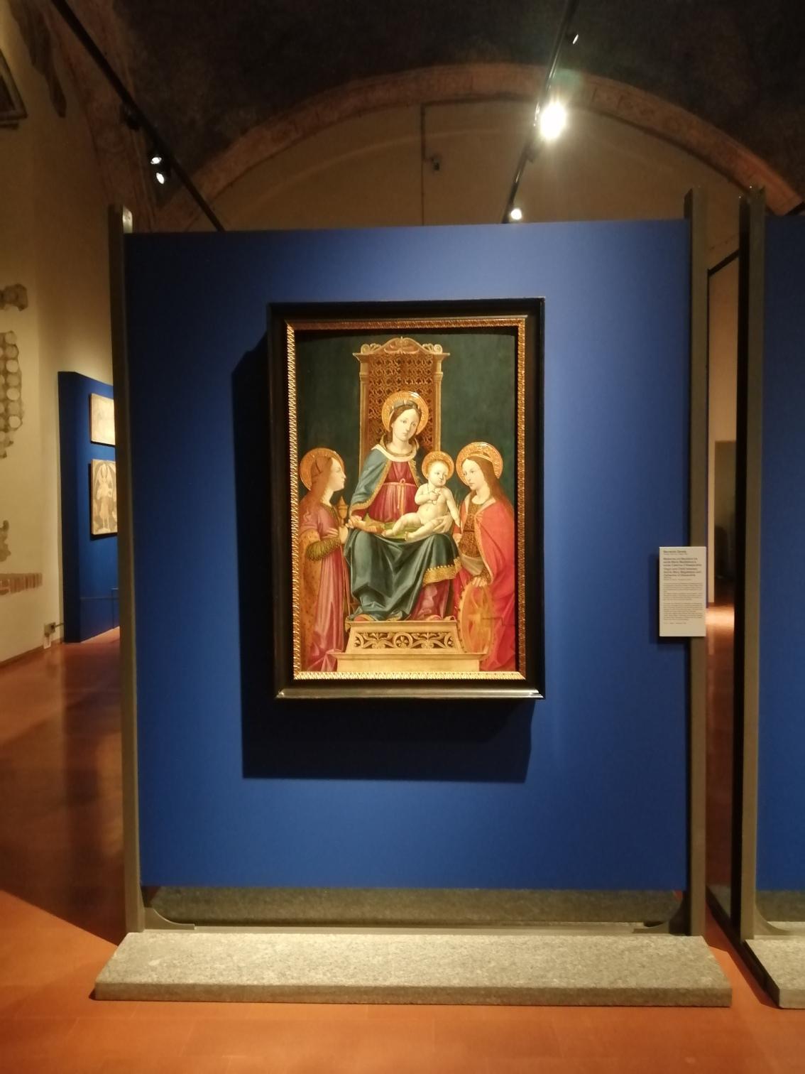 Il piano cromatico ha scelto un blu carico per le superfici espositive (tranne la pala Bottigella con un rosso), mentre la nuova illuminazione si concentra sulle opere.