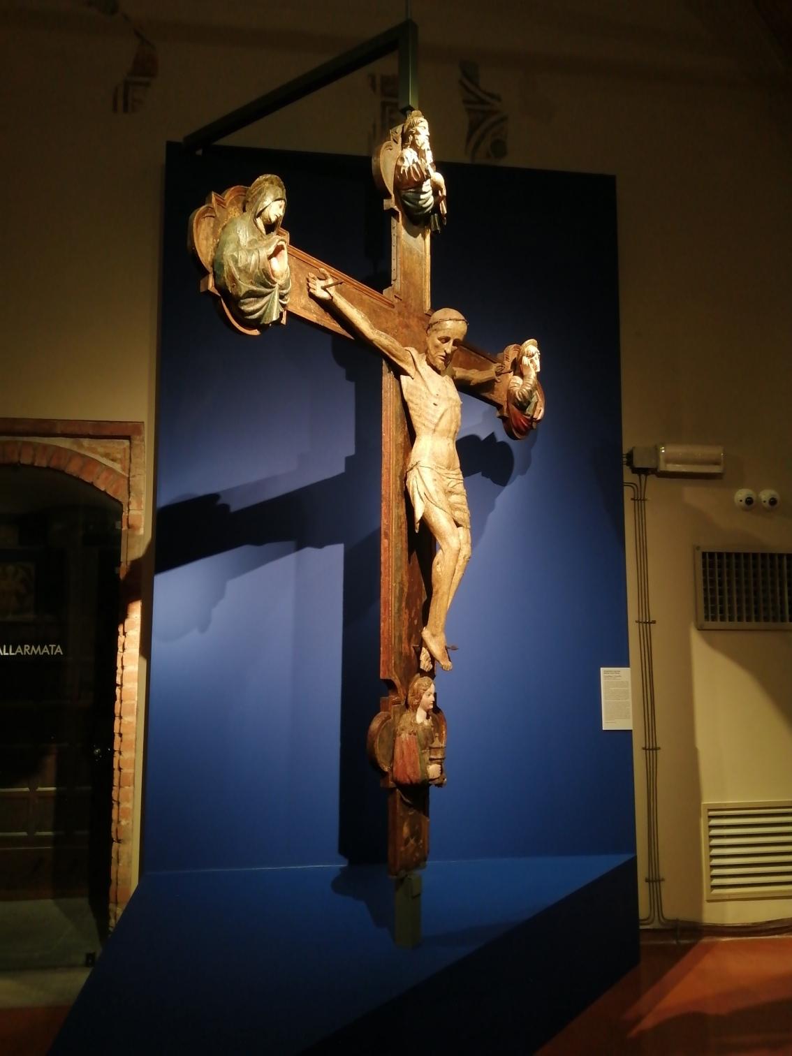 Il percorso comprende anche le sculture, tra cui un grande crocefisso ligneo, è ha un andamento libero che invita il visitatore a percorrerlo per scoprire cosa lo aspetta.