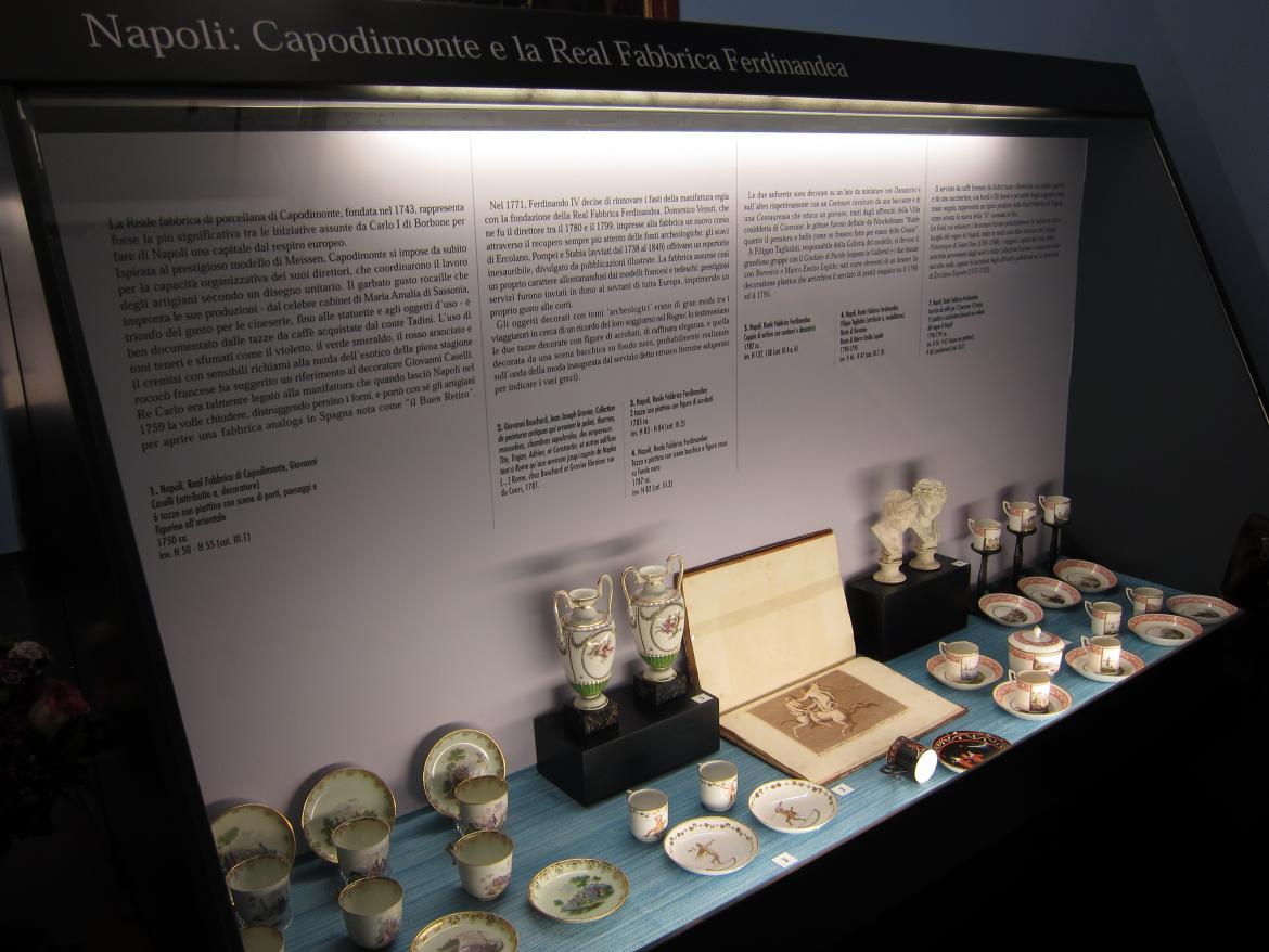 La ricomposizione del “servizio alla francese” è il centro anche concettuale dell'esposizione, attorno alla quale ruotano confronti con altre porcellane della Collezione Tadini.